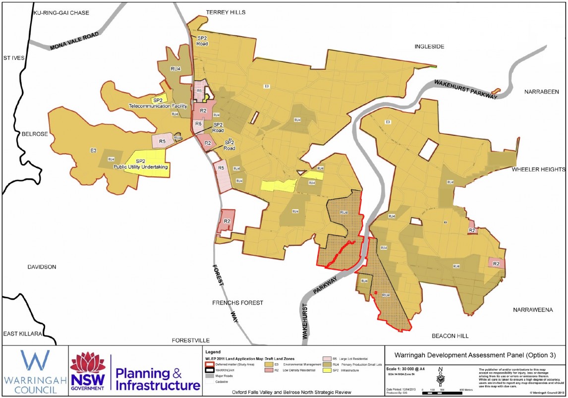 As part of Stage 1 of the Strategic Review, Warringah Council is holding an independent public hearing and is seeking an opinion from the Warringah Development Assessment Panel (WDAP) as to the most appropriate land use controls (under Warringah Local Environmental Plan 2011 (WLEP2011)) for deferred land in Oxford Falls Valley and Belrose North. The public hearing is being held at 6:00pm at Warringah Council Chambers on Wednesday 18 June 2014.